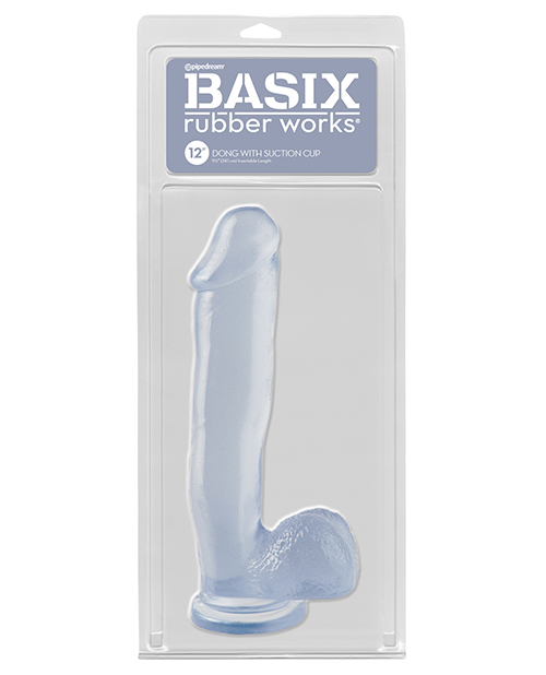 The Basix Rubber Works 12" Suction Cup Dong from Pipedream puts a new twist on a classic product to bring you the best possible rubber made in the USA. Pipedream's American-made rubber is 100% phthalates and latex-free, environmentally safe and hypoallergenic. Overall length: 12". Clear.