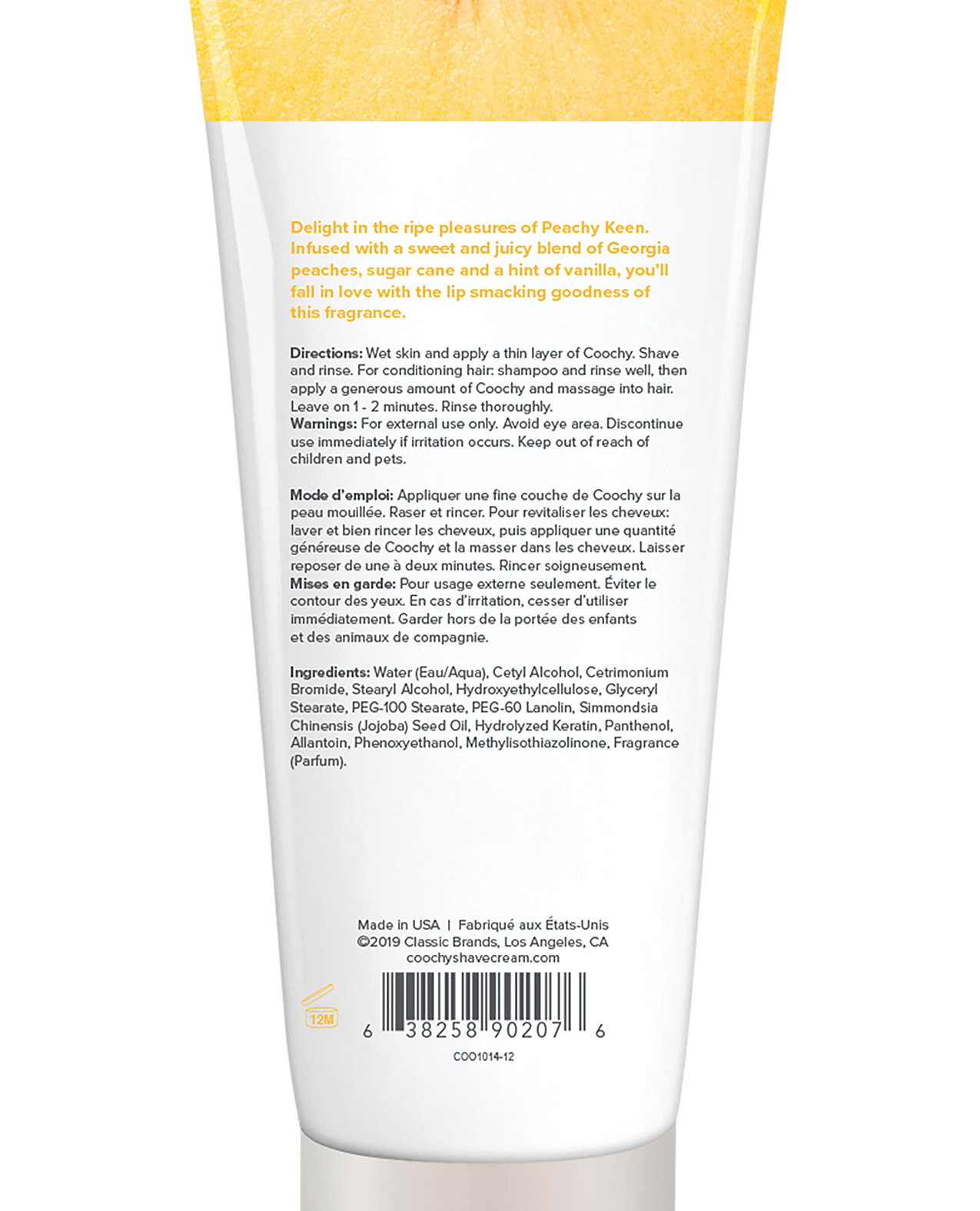 Coochy Rash Free Shave Cream dramatically reduces cuts, nicks, scrapes and razor irritation. It contains a special conditioner and moisturizing complex that provides an effortless glide for an oh so smooth shave. Your coochy will love you for it! Why It's Different: The conditioner and moisturizing complex provides the perfect lubrication and razor glide. Jojoba Seed Oil provides a protective barrier for skin and helps seal in moisture. COOCHY does not contain unnecessary foaming agents. Tip: As with any shaving cream, soak skin and exfoliate before shaving. If necessary, follow with an after-shave protection mist. PEACHY KEEN: Infused with a sweet and juicy blend of Georgia peaches, sugar cane and a hint of vanilla. You'll fall in love with this lip-smacking fragrance.