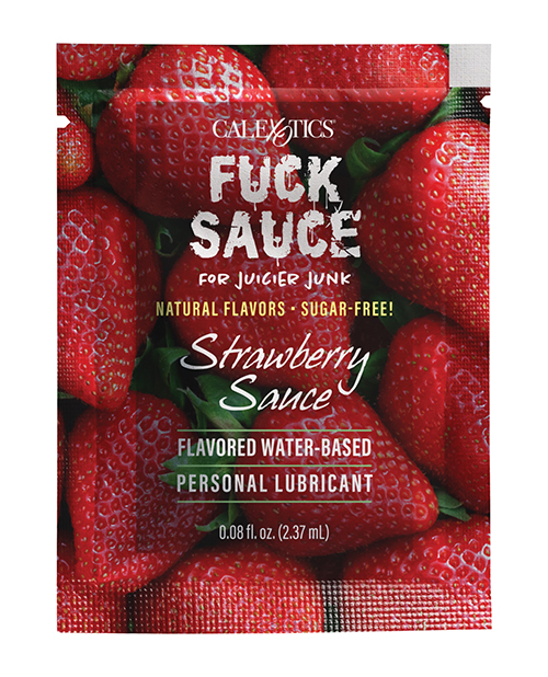 Everything is better with sauce on it and the Fuck Sauce Strawberry Flavored Water Based Lubricant is sure to have you coming back for another taste. The premium water-based formula is infused with 100% natural edible flavoring with an arousing light warming effect. The super-slick lubricant enhances natural lubrication, moisturizes and leaves skin lickably soft. The light warming effect is made to arouse the senses and provide a pure, erotic stimulation to enhance your oral experience. The edible flavoring is natural and sugar-free. Expertly created by the sexual health experts at CalExotics, the water-based formula is pH-friendly, safe for all skin types, and free from artificial fragrances and colorants. Made in the USA. How to Use: Use as needed to enhance intimacy and lubricate pleasure. Apply a small amount of flavor-infused lube to desired area to lubricate, reapply as needed. Easily washes away with warm water.