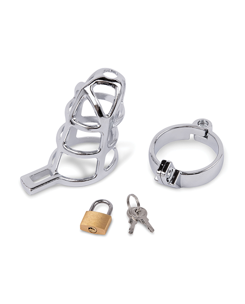 Made with sleek premium stainless steel, this cage will prisoner comfortably keep the wearer contained. Striking the perfect balance between restraint cock cage and comfort.