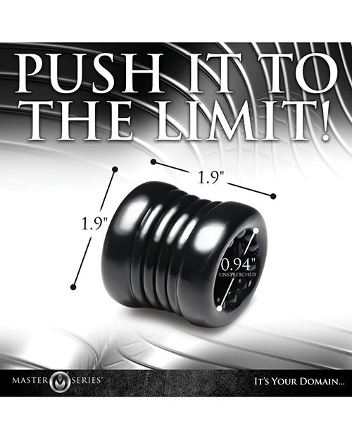 Enhance your pleasure and extend the duration of your play when stretching your balls! This stacked ball stretcher is made out of body-safe, phthalate-free, stretchy TPE and fits over the balls and firmly holds them away from your shaft. The stacked layers give you just enough stretch and pull without any forcefulness or pain. They have a good amount of give to them so they'll remain comfortable while being worn for a long duration and moving around from position to position. At both ends of the tunnel are rows of textured nubs that add extra stimulation and grip. Use only with water-based lubricants for best results and avoid petroleum products. To clean, use warm water and mild soap, then rinse it off and spray it with a toy cleaner before letting it air dry.