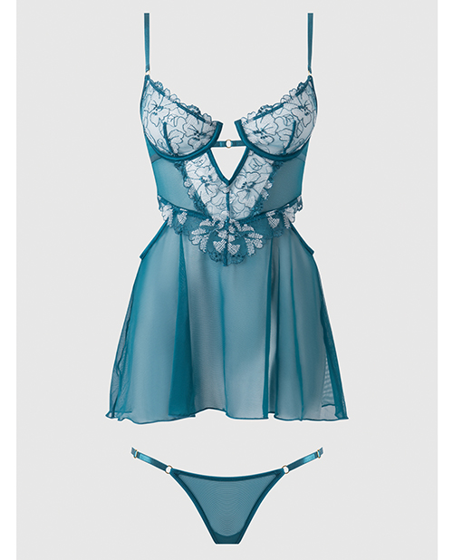 Step into the Nova Blacklight Lace Babydoll & G-String Set and let the fantasy unfurl. This flirtatious duo frames your figure with playful cutouts that whisper steamy nights. The blacklight-ready embroidered V-shaped bodice and breezy mesh skirt ensure a flattering silhouette so you can focus on turning date night into a sultry event. Pairs perfectly with the matching embroidered G-string. Ready to glow? Fabric: SHELL: 100% POLYESTER. MESH: 88% NYLON, 12% SPANDEX. EXCLUSIVE OF TRIMS AND ELASTIC. Care: HAND WASH COLD WATER. NON-CHLORINE BLEACH. HANG TO DRY. DO NOT IRON. XL – Bust: 40-41 inches. Waist: 34-35 inches. Low Hips: 43-44 inches. US Dress 14/16.