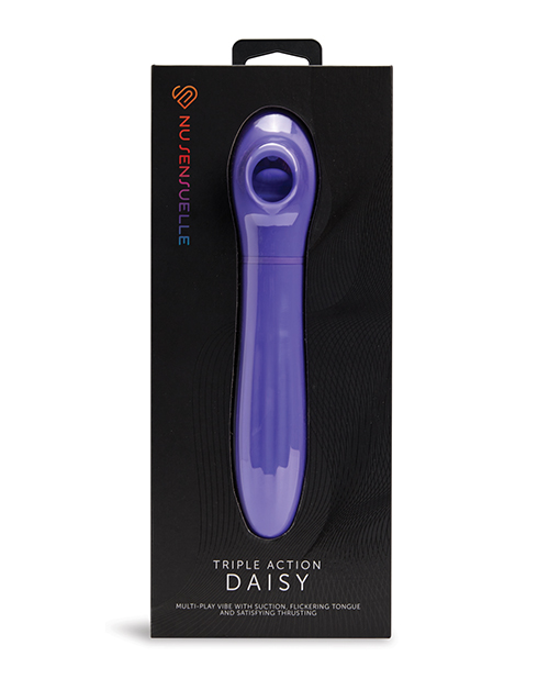 ENJOY MULTIPLE TITILLATING SENSATIONS WITH THE SATISFYING DAISY! We took our wildly popular Trinitii and bumped up the erotic potential with the addition of thrusting to simulate a realistic and satisfying sensation. With three speeds and seven modes, the imaginative thrusting component replicates the natural movements of a partner. Daisy also offers seven gentle suction speeds and five flickering tongue modes that can be layered to simulate oral play. The spirited multi-play functionality of suction, flickering tongue, and thrusting delivers the orgasm you deserve. Two Year Warranty.