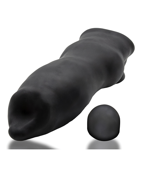 OXBALLS softer rubbery FIDO cocksheathNIGHT EDITIONin our lush rubbery SILSOFT SILICONE blend and a smooth, velvet-black color. This is a softer, squishier formula for the hardest and darkest of howling play. FIDO is thinner on your shaft where you want for more fucking feelit grips and melds to you like a rubbery second skin but has a seriously fat rubbery knot at the base for extra hole-impact. The built-in COCKSLING design at the base keeps FIDO firmly on your shaft even when pounding hard and deep. How To: Coat the inside with lube, pop your meat in the sheath and drop your nuts through the sling-hole then you're ready to plowFIDO's new softer rubbery material strokes your shaft while you pump. For a tighter fit or more suction grip, FIDO comes with a nub insert that is designed to "lock" into the hollow chamber to shorten the inner shaft length to fit any size dick. NIGHT EDITIONs plush silicone-blend rubber is Phthalate free with no scent and has amazing super-strong stretch. SILSOFT rubber is LUBE SAFE, we recommend water-based lube like our premium thick OXLUBE, hybrid easy-cleanup OXLUBE or our super-concentrated silicone OXLUBE. Oil-based lubes not recommended. CARE: Wash all toys after use in warm soapy water, air dry, (they will last longer). Store toys separately: we recommend storing in breathable cloth pouches, or for larger toys store in clean cotton socks.