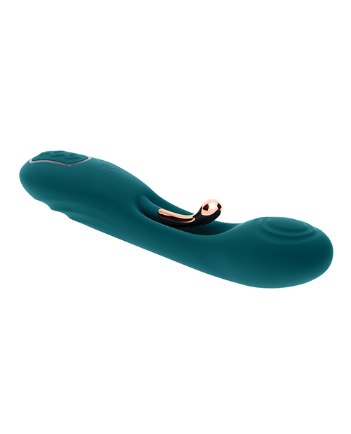 Let Aurelie rock your world with its rose gold G-Spot tickler! This unique toy is designed specifically to stimulate the G-Spot with a dual approach. The main shaft is flexible and supple, arched gently to reach the G-Spot area with ease and stimulate with its circular textures, then the G-Spot tickler delivers intense, concentrated vibrations against the G-Spot with its own separate motor to carry you away on an exhilarating wave of pleasure. A textured grip allows easy navigation to make G-Spot exploration effortless and deeply satisfying. Five Year Warranty.