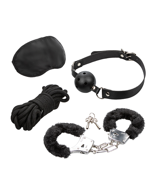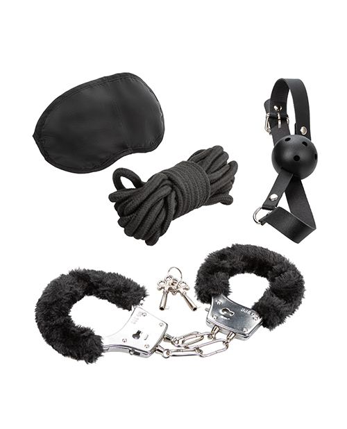 Unleash your inner adventurer with the Pleasure Kits Explorer Collection, a tantalizing set designed to take your sensory play to exhilarating new heights. This collection is a treasure trove for the curious, featuring a breathable ball gag with a fully adjustable buckle, an eye mask that stretches to fit, removable faux fur cuffs, and 16.5 feet of rope. Whether you're a seasoned enthusiast or new to the game, this kit is designed to unlock new realms of pleasure.Dive into the unknown with the universally sized eye mask that invites you to surrender your sight and heighten your other senses. The ball gag, designed for both comfort and control, ensures that every moan is muffled to perfection, enhancing the anticipation of every touch. Meanwhile, the plush faux fur cuffs offer a gentle embrace around wrists or ankles, equipped with a safety release and two keys for secure yet thrilling restraint play.With the versatile rope, let your creativity unfold as you and your partner discover new ways to connect and explore. This kit encourages you to break boundaries and explore power dynamics in a comfortable, fun, and incredibly intimate way. The Pleasure Kits Explorer Collection is the perfect invitation to a night of exploration, where rules are rewritten and fantasies come alive. One Year Warranty.