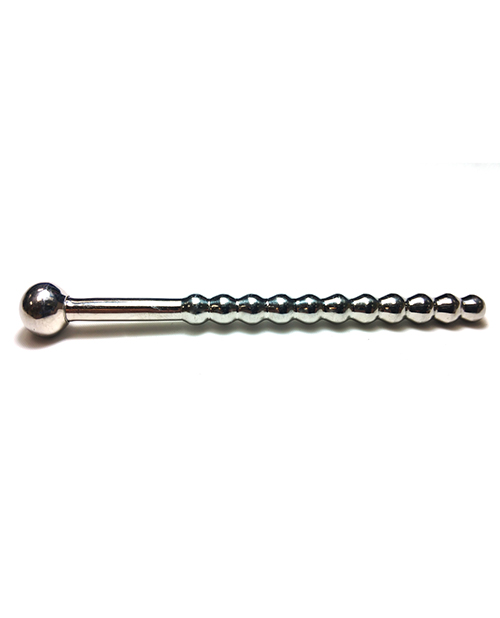 Stainless Steel Beaded Urethral Sound with Stopper has a smooth ribbed shaft for intense stimulation and a hollow centre for easy urination and ejaculation. Stopper ball at the top allowing for full insertion.