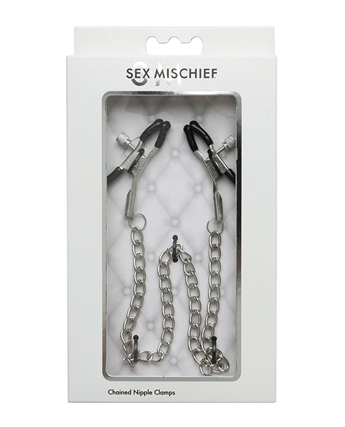 Test your limits, or your partners, with this BDSM basic. Rubber-tipped for comfort, these clamps are a great introductory accessory for those who lean towards masochist or submissive roles, though anyone can enjoy the teasing torment of nipple toys. Thumb-screws allow you to adjust the pressure on each nipple, while a connector chain gives you something to tug on as climax nears. Get creative and try these clamps on other body parts! Features: Coated nipple clamps with tension adjustments Nickel-free Only 1.1 ounces Perfect for nipple stimulation and may be used in other sensitive areas 13 inch chain Product Dimensions: 13 inches (33 cm) chain, 1.1 oz In The Box: One pair of coated nipple clamps with tension adjustments Materials: 92% nickel free metal, 8% phthalate free PVC