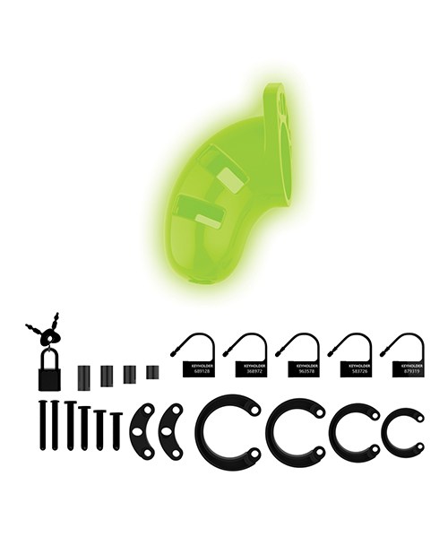 Ouch! Glow in the Dark, the future of bondage is here. Designed with an authentic bondage aesthetic, but with the added delight of the glow-in-the-dark properties, the fluorescent green detailing will turn every event into a part. With Ouch! Glow in the Dark, the fun is just beginning when the lights go out. Looking for something really exciting and naughty? Do you want to be thoroughly controlled by your partner? This Cock Cage gives the opportunity to take all power or to completely hand it over to your partner. Play safe, stop using if pain occurs. Ouch!Glow-In-The-Darkproducts must be activated with the sunlight before enjoying it in the dark.