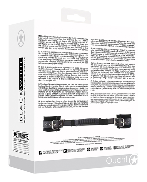 Looking for a handcuff with handle that is made to play hard with? Look no further. The Adjustable Leather Handcuffs with Handle of Ouch! are comfortable but incredibly secure and have quality leather straps with soft fabric on the outside. With straps for the cuffs adjusting the size is a breeze and fits almost any wrist. Because of the handle you can easily hold on to your partner from behind. Product dimensions – 19.69" x 3.15" x 2.17" Product weight – 6.42 oz Materials – Metal and Faux Fur.
