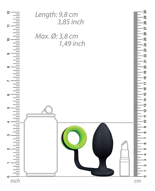 Ouch! Glow in the Dark, the future of bondage is here. Designed with an authentic bondage aesthetic, but with the added delight of the glow-in-the-dark properties, the fluorescent green detailing will turn every event into a part. With Ouch! Glow in the Dark, the fun is just beginning when the lights go out. It's time to double the fun with this butt plug with cock ring. The plug will stimulate your backdoor while the cock ring will bring you sweet sensations in the front. What's more to want that this? Ouch!Glow-In-The-Darkproducts must be activated with the sunlight before enjoying it in the dark.