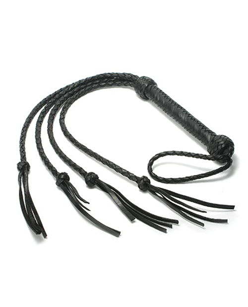 Reach back and give them a lashing like never before! Made from garment leather with a braided design, this three foot whip is unlike anything else. Once the handle ends, you will find there are four lashes, instead of one, each of which splits up again at the tip into more smaller lashes! Let the punishment begin for your little bad sub.