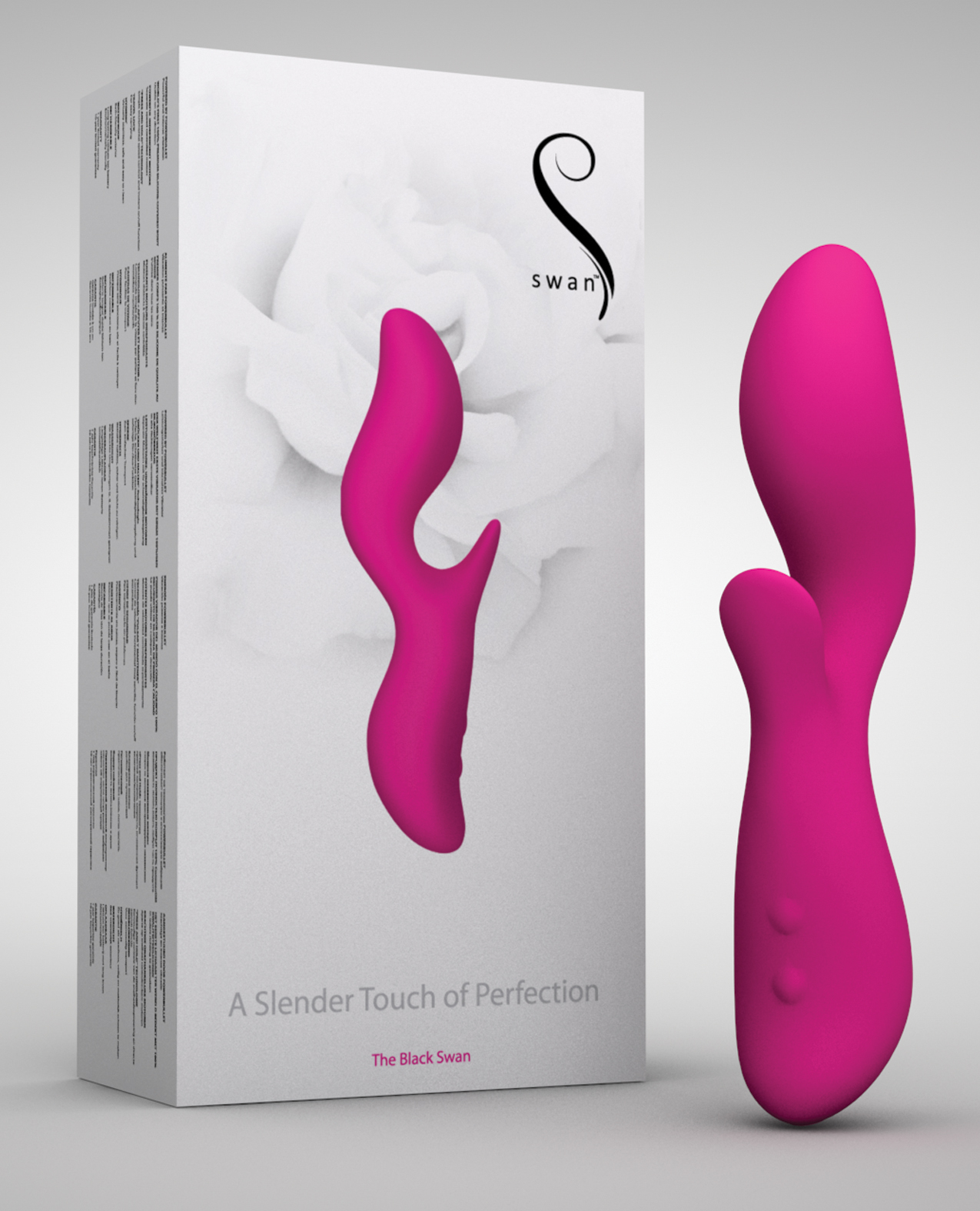 Noted for its curved features and very unique shape, the Black Swan has two vibrations in a design that perfectly hugs the natural female form. Used on their own or in unison, the large flexible internal stimulator is shaped for the most exciting sensations while the clitoral stimulator flicks and pulsates. As you increase the speed of the vibration, the Black Swans ability to pleasure you intensifies as its quivering body delivers elating sensations. Material: Silicone. ABS USB rechargeable, cable included. Charge Time: 2 Hours Run Time: Up to 14 Hours Dimensions: Overall Length – 7.48 inches Width (top) 1.46 inches (middle) .79 inches (bottom) 1.46 inches