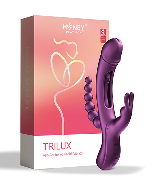 Take your pleasure to new heights with the Trilux Kinky Finger Rabbit Vibrator with Anal Beads in purple – where luxury meets playfulness for an exhilarating sensory journey.